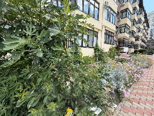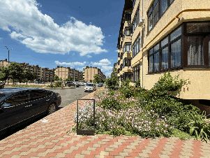Студия находится в цокольном этаже. Ремонт только сделан, никто не жил. Вся мебель и сантехника новая. На полу керамогранит, под ним утеплитель пенопласт 5 см. Окна нет. Сделана приточная - отточная вентиляция. Бойлер на 50 литров. Дверь входная металлическая. ЖК ''Лазурный'' обслуживает дома хорошо, территория чистая. в цоколе тоже убирают. Соседи хорошие. Инфраструктура отличная: гипермаркеты, восточный рынок, клиники, детсад, школа, остановка....все рядом. До моря (песчаного пляжа) мин 7 на автобусе, пешком мин 30 . СОБСТВЕННИК