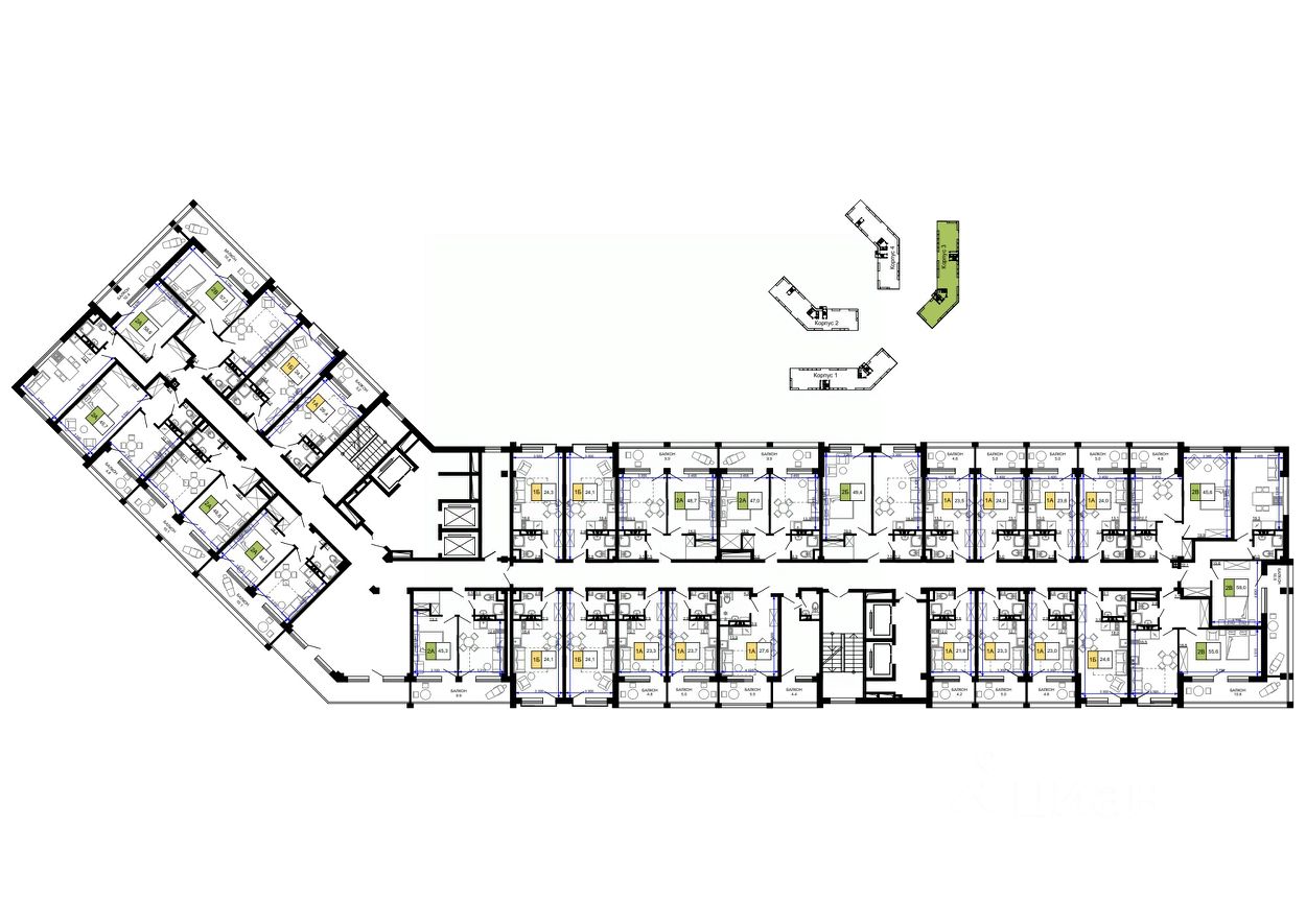 ЖК ''ДВА Адмирала'', г. Анапа, Ленина 241 Комплекс полностью построен и сдан в эксплуатацию Жилой комплекс ''Два Адмирала'', расположен в активно развивающемся районе Анапы. Место расположения по истине уникально, так как рядом Лысая гора, ласточкино гнездо, то есть самая популярная смотровая площадка. Отсюда видна Анапская бухта, а также открывается красивая панорама города. Объект включает в себя два 16-этажных дома и двухэтажный подземный паркинг и кладовые. На территории комплекса красивый ландшафтный дизайн, современные детские и спортивные площадки! Территория закрытая, двор без машин. ИНФРАСТРУКТУРА: образовательные учреждения (школы и гимназии) детский сад супермаркеты и магазины достопримечательности современный парк Черноморский ПРЕИМУЩЕСТВА: современный внешний вид зданий благоустроенный двор наличие подземной парковки игровые и спортивные площадки во дворе дизайнерские входные группы расположение комплекса в развивающемся перспективном районе Анапы дома подключены к городской системе отопления, водоснабжения и канализации в каждую квартиру подведен оптоволоконный кабель скрытые ниши под установку кондиционеров и водоотведение от сплит-систем архитектурно-художественное освещение фасадов зданий ТЕХНИЧЕСКИЕ ХАРАКТЕРИСТИКИ: Дома построены по монолитной технологии с утепленным вентилируемым фасадом, облицованным керамогранитом двух цветов! На фасаде домов предусмотрена скрытая система кондиционирования! Квартиры ЖК ''Два Адмирала'' сданы в предчистовой отделке. В предчистовую отделку квартир, входит: - стяжка, штукатурка, - шумоизоляция между квартирами материалом Техноэласт Акустик Супер а 360 - разводка электричества по квартире, - интернет, TV, кабель домофона, заведены в квартиру, - радиаторы, - все счётчики (вода горячая и холодная, электро, тепловые), - утепление и оштукатуривание лоджий, остекление лоджий, - качественная входная дверь. Каждый дом имеет по одному подъезду с двумя лифтами (пассажирский и грузопассажирский). Один из лифтов первого дома следует с -2 по 16 этаж, лифты второго дома с 1 по 16 этаж. На первом этаже первого дома коммерческие помещения. На -1 и -2 этажах расположены парковки и кладовки. Каждый жилой этаж разделен на два крыла по 5 квартир. Такая организация площадок очень удобна, за счет малого количества соседних квартир. Планировочные решения квартир практичны, функциональны и удобны!