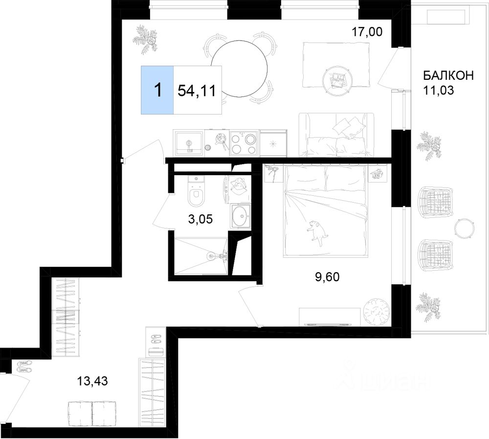 54 м² · Этаж 3 из 12