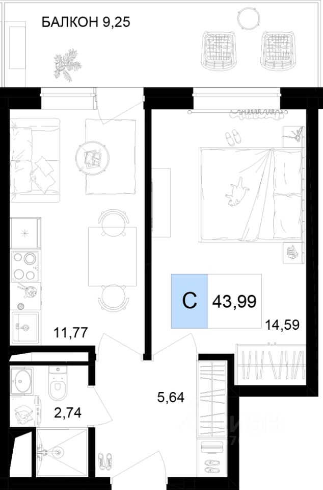 43 м² · Этаж 13 из 16