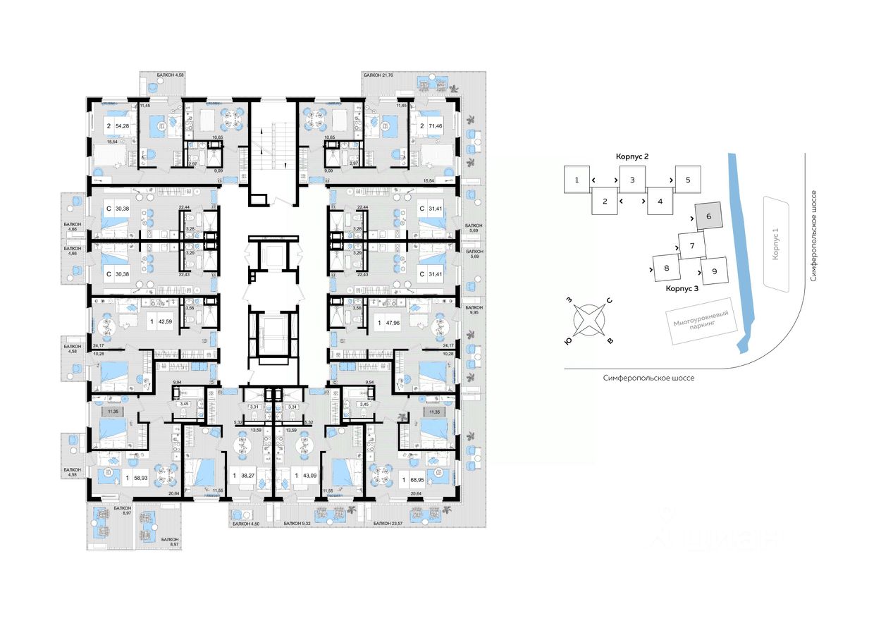 56 м² · Этаж 6 из 9