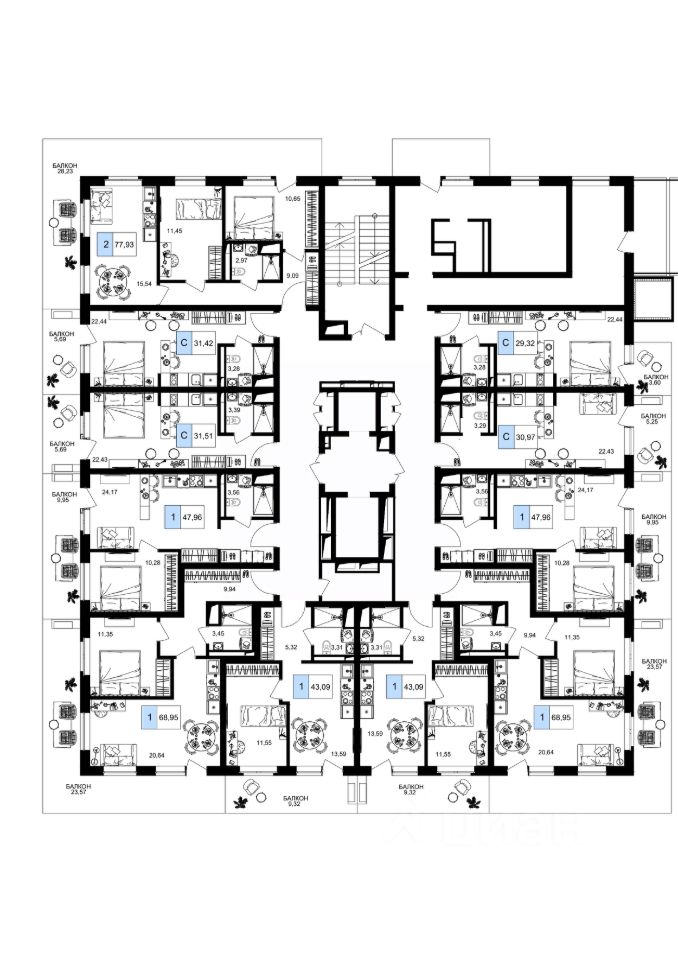 43 м² · Этаж 7 из 9