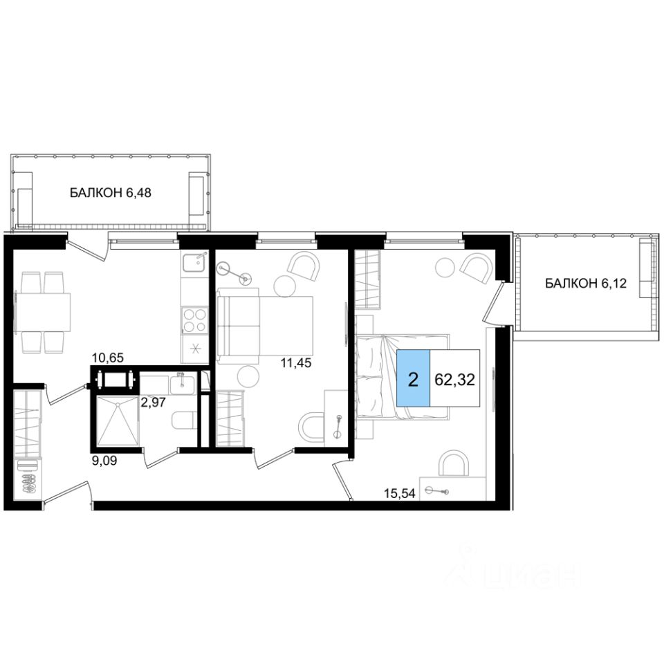 62 м² · Этаж 2 из 8