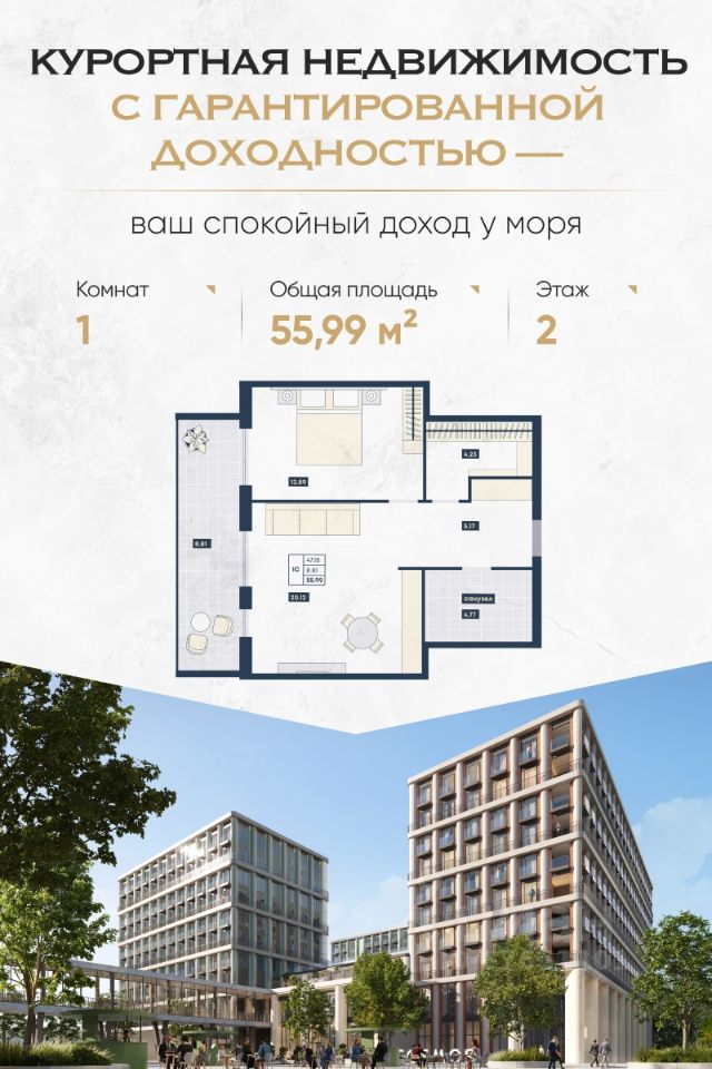 ГК ''Лучи'', Анапа. Вложение с перспективой, созданное для пассивного дохода и сохранения капитала. — Доход до 16% годовых под управлением отельной компании — Рассрочка до 90% — от 15 тыс. руб./м² в месяц — 6 лет — средний срок окупаемости — Успейте купить до роста цен. Сдача уже во 2 кв. 2026 года Почему выбирают ''Лучи'' в Анапе: — Доход без забот: вся инфраструктура, управление, маркетинг и обслуживание уже организованы. — Пассивный доход круглый год: крытый аквапарк, медцентр, банный комплекс, 30+ ресторанов, детский центр и конгресс-холл обеспечивают круглогодичную загрузку. — Уверенность в завтрашнем дне: проект реализуется по 214-ФЗ, с эскроу-счетами. Это один из самых защищённых форматов инвестиций. — Надёжная альтернатива банковским продуктам: в условиях инфляции и нестабильности недвижимость остаётся одним из самых устойчивых активов. — Локация и масштаб: 700 метров до моря, 32 гектара территории, 6 500 апартаментов под управлением профессиональных операторов. Формат — апартаменты с отделкой от ''Azimut'' Номера передаются с полным оснащением по высоким отельным стандартам. Управление и загрузка на стороне опытной управляющей компании. Вы получаете доход без вовлечённости. Подходит вам, если вы: — Думаете о пассивном доходе и финансовой подушке — Хотите сохранять и приумножать капитал, не погружаясь в операционные вопросы — Заботитесь о будущем семьи или формируете вложение в наследство — Хотите отдыхать сами или сдавать под управлением Получите презентацию с планировками, ценами и расчётами доходности. Покажем, как ваша инвестиция будет работать на вас уже с момента сдачи. Сейчас — лучшее время, чтобы зафиксировать цену до повышения. Инвестируйте в отдых, который приносит доход.
