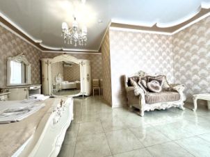 Объект 163141. Продаётся 2-этажный дом 432,3 кв.м с видом на море!Море в 800 метрах (15 минут пешком)!На 1-ом этаже (133 кв.м) сделан ремонт, проведено отопление и теплый пол. На 1-ом этаже располагаются три спальные комнаты, большая кухня-гостиная, гардеробная (кладовая) комната, три санузла (один совмещённый с ванной расположен отдельно, два других примыкают к спальням). Просторный коридор может вместить большую гардеробную. 2-ой этаж (154 кв.м) без отделки представляет собой большой холл с колоннами и две спальные комнаты, каждая из которых со своим санузлом. Одна из комнат имеет выход на просторный балкон 14 кв.м, а вторая - на балкон 7 кв.м.Есть цокольный этаж площадью 145,5 кв.м, где расположена бойлерная комната, котельная, по проекту баня (парная, душевая, комната отдыха и санузел), 3 комнаты - по проекту мастерская, теннисная, винный погреб, 4 кладовых, 2 санузла. Вход в цокольный этаж есть не только из дома, но и со двора (в баню).Лестница в доме ведёт на крышу, где по желанию возможно расположить зону отдыха с бассейном.Участок 4 сотки, имеется возможность организовать 3 парковочных места.Отопление электрическое, проведено с учётом дальнейшего газоснабжения. Газ проходит по меже. Водоснабжение автономное (скважина), канализация - септик.Дом можно использовать для комфортного проживания большой семьи либо для бизнеса - как гостевой дом.
