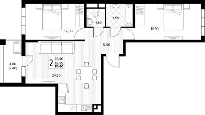Продаётся 2-комнатная квартира в строящемся доме (поз.8), срок сдачи: II-кв. 2026, общей площадью 64.4 кв.м., на 3 этаже. Новый жилой комплекс ''Кипарис'' от застройщика ''AVA'' расположен по адресу: Россия, Краснодарский край, муниципальный округ Анапа, село Сукко, Мирная улица