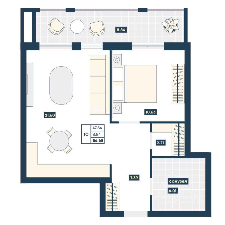 56 м² · Этаж 8 из 9