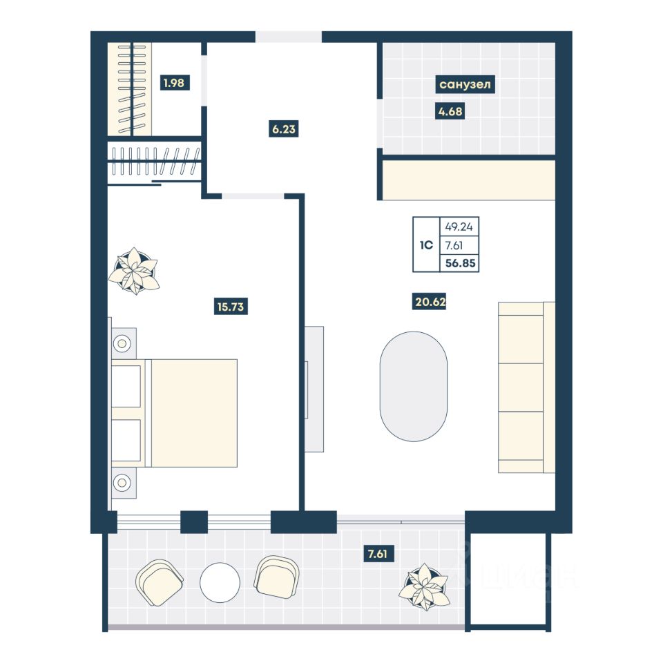 57 м² · Этаж 6 из 9
