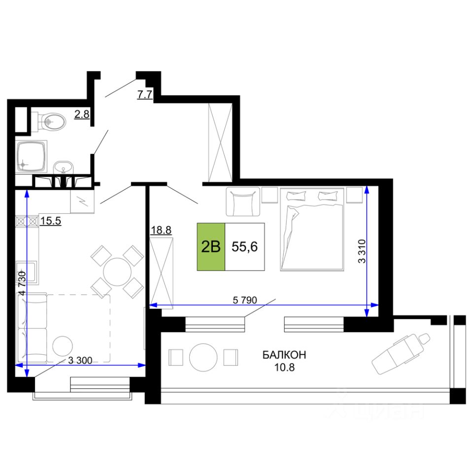 55 м² · Этаж 7 из 9
