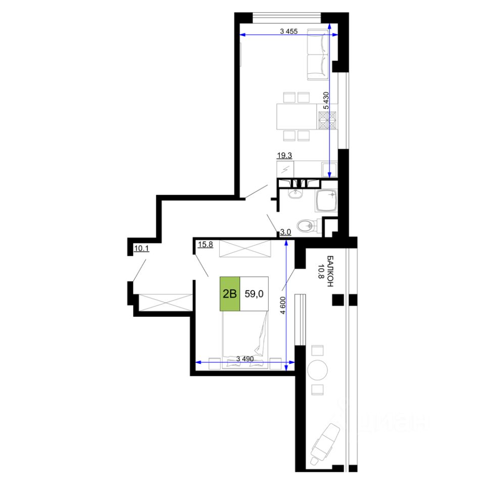 59 м² · Этаж 2 из 9