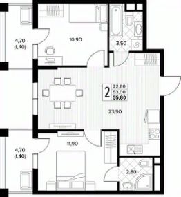 55 м2
