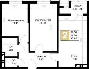 58 м2