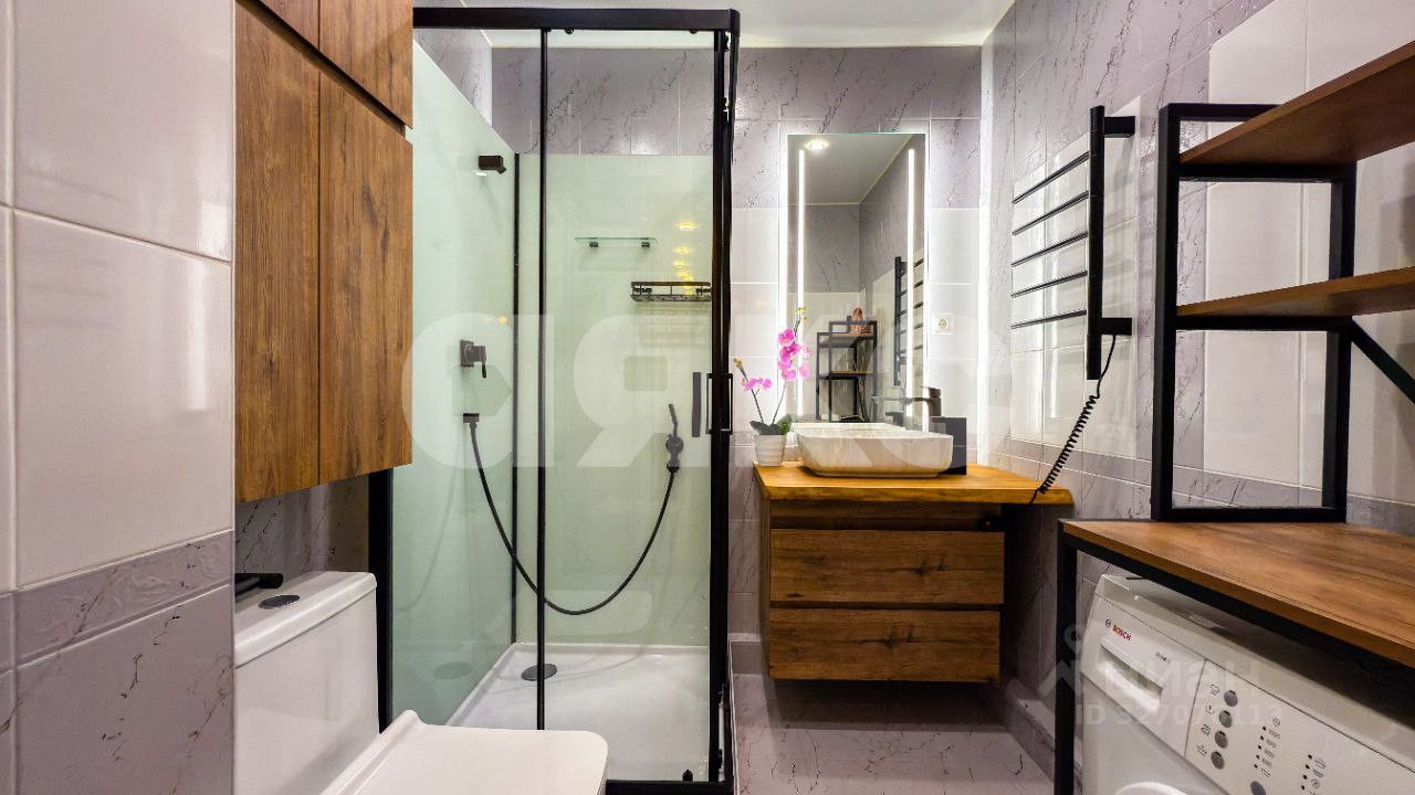 Объект 165171. Продается квартира в новом современном микрорайоне с ремонтом от застройщика. Идеально подходит для проживания, а также для посуточной и долгосрочной аренды. Светлая, но не солнечная сторона - солнце только утром. Чистый подъезд. Ухоженная придомовая территория. Комплекс расположен в районе с развитой инфраструктурой. Большой двор с детскими и спортивными площадками, огромное множество парковочных мест. Рядом остановки общественного транспорта. В пяти минутах ходьбы ТРЦ ''Красная площадь'' и Табрис, фермерский рынок с всегда свежими овощами, фруктами, свежевыловленной рыбой и мясом от частных фермерских хозяйств. В шаговой доступности располагается гимназия ''Эврика'', детский сад, поликлиника, супермаркет, магазины, пункты выдачи, салоны красоты. Императорский парк - прекрасное место для прогулок с детьми. В парк попадаешь, буквально при выходе из подъезда. О КВАРТИРЕ: Квартира площадью 29.54м2, комната 9.93м2, кухня 10.92. 15 этаж 16 этажного дома. Лоджия застеклена.