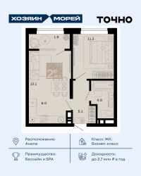 Откройте для себя мир комфорта и роскоши в жилом комплексе бизнес-класса ''Хозяин морей''. 9 домов от 8 до 12 этажей окружены благоустроенной территорией с прогулочными дорожками, бассейнами, детскими площадками, пространством для спорта и отдыха, двумя садиками и просторной школой. Здесь представлены разнообразные планировки: от комфортабельных студий площадью 33 кв.м до просторных семейных квартир с уникальными видами на бескрайнее море — идеальная комбинация уюта и статуса!