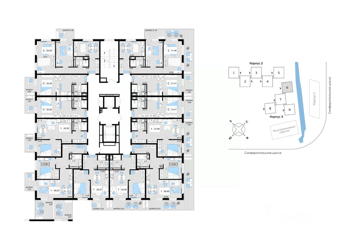 43 м² · Этаж 6 из 9