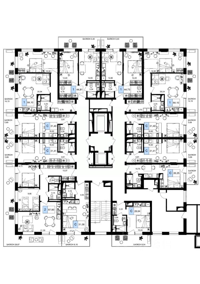 44 м² · Этаж 4 из 9
