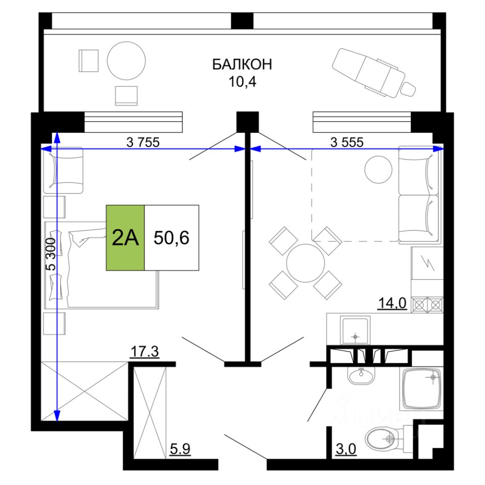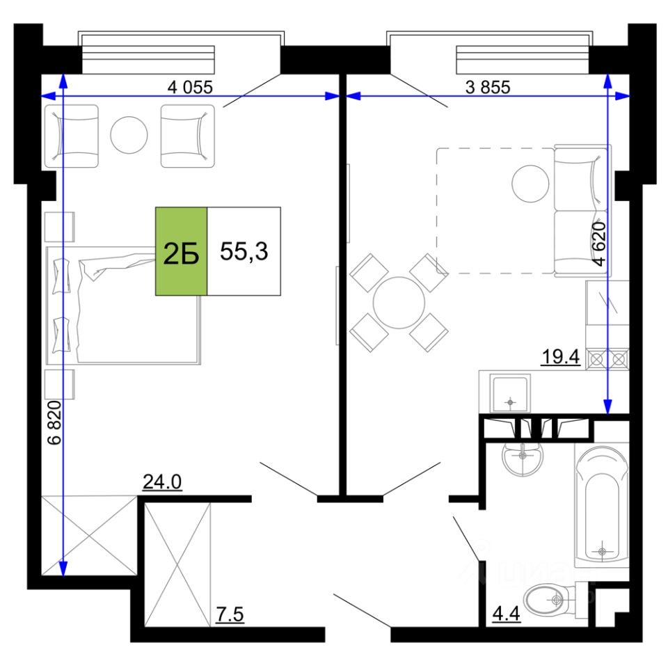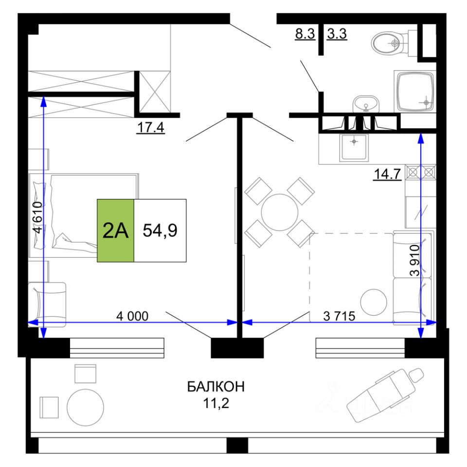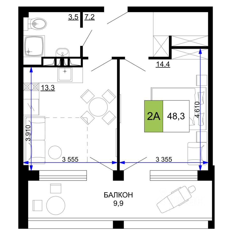 55 м² · Этаж 3 из 9