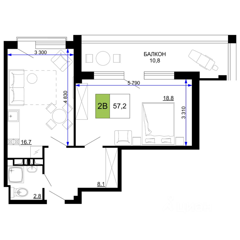 57 м² · Этаж 6 из 9