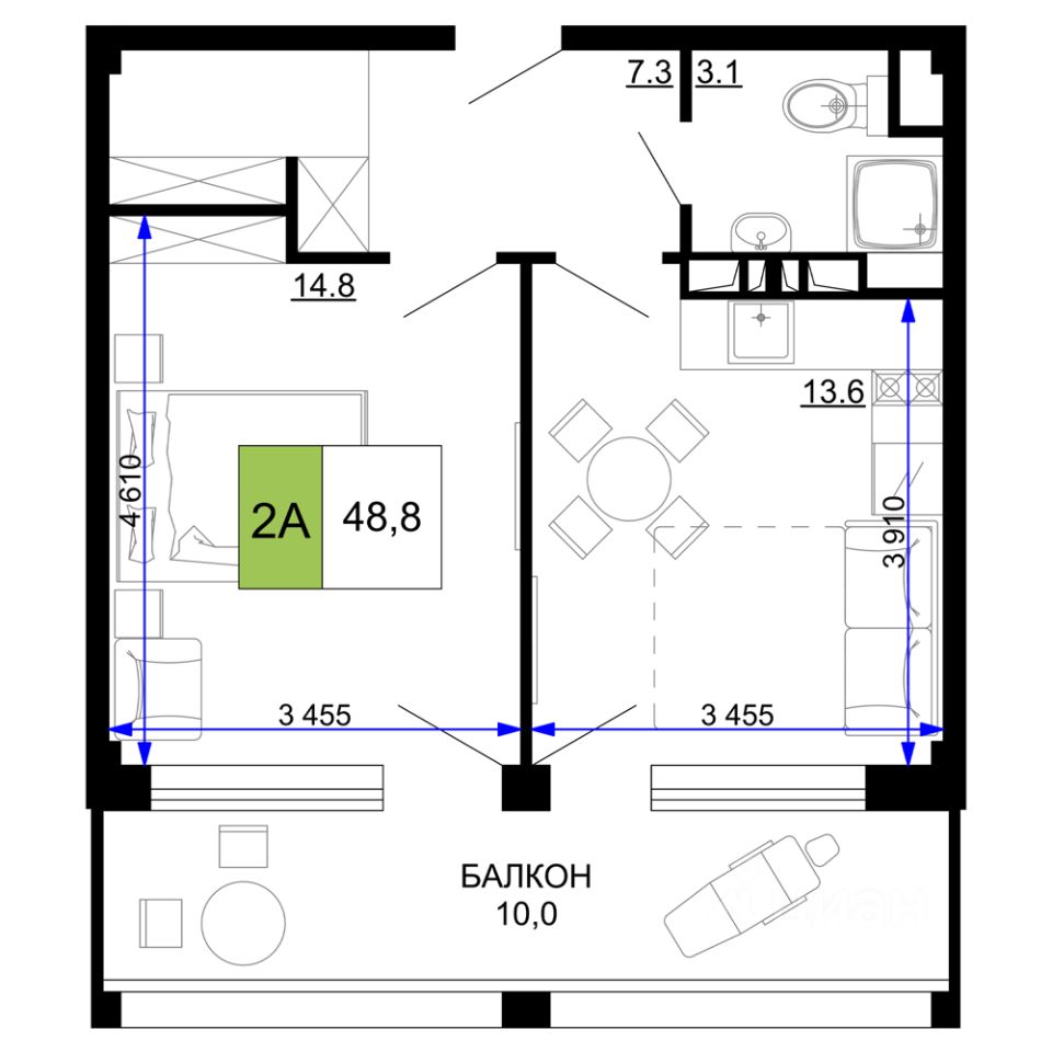 46 м² · Этаж 6 из 9