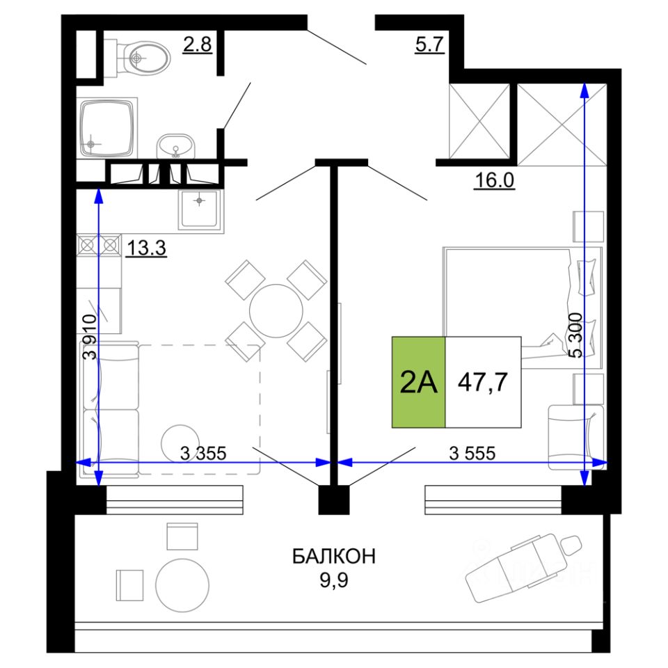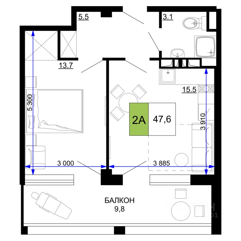 47 м² · Этаж 9 из 9