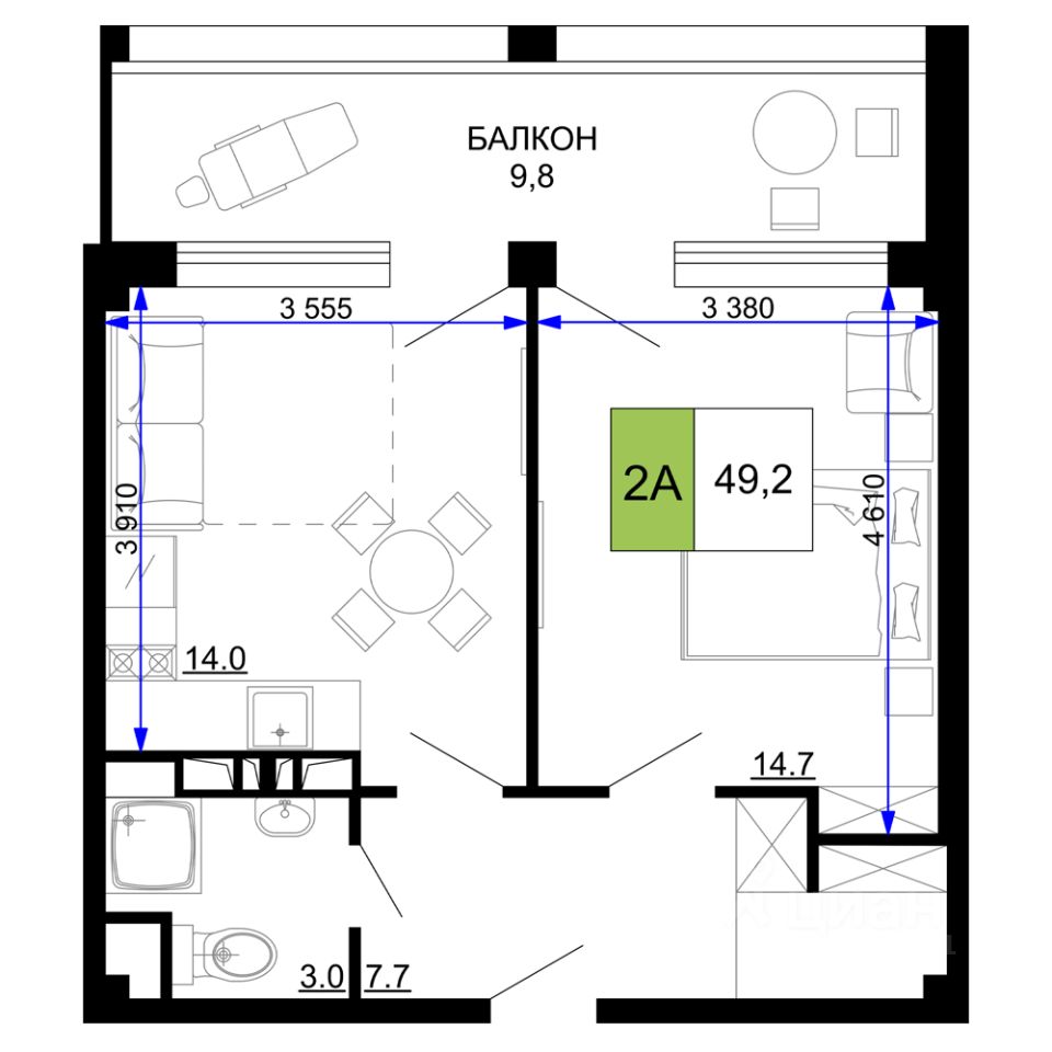49 м² · Этаж 9 из 9