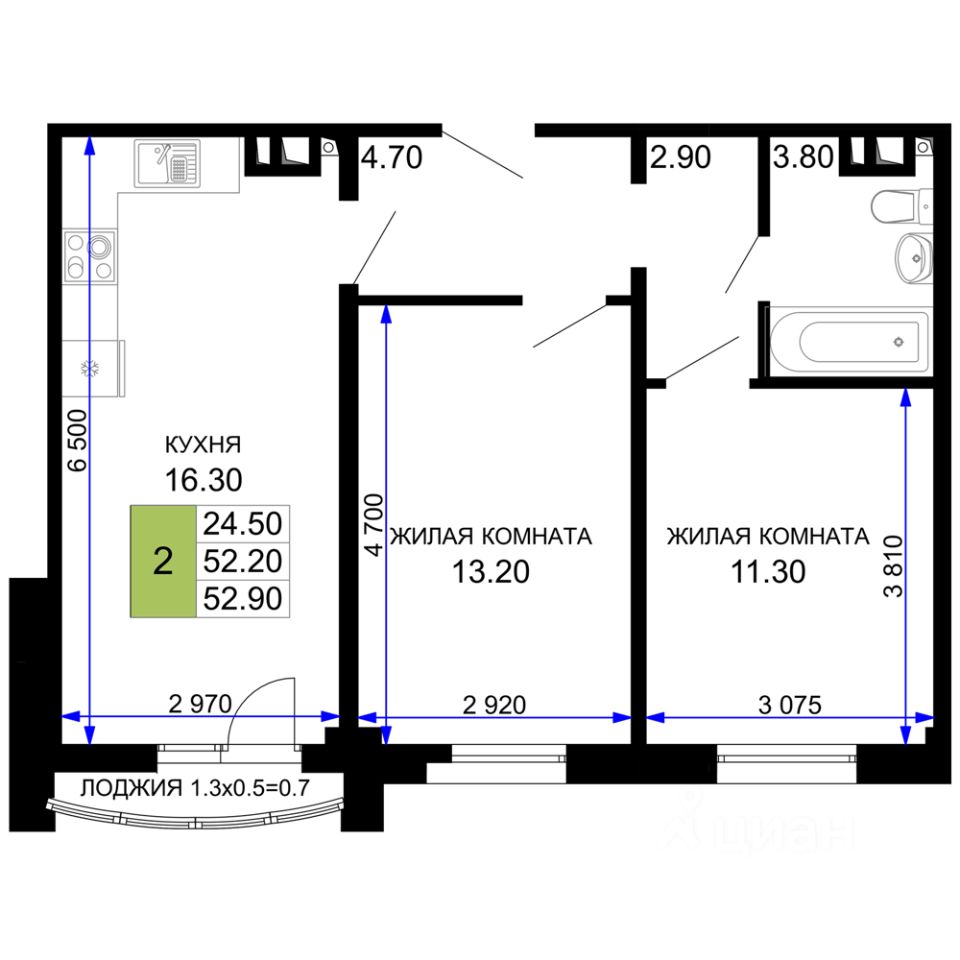 52 м² · Этаж 6 из 12