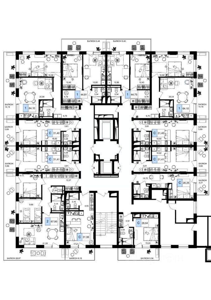 64 м² · Этаж 8 из 9