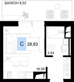 Уютный однокомнатный номер сочетает все необходимое для комфортного проживания в компактном и продуманном пространстве. Большая комната легко зонируется на спальную и гостиную зоны, а встроенная кухонная ниша обеспечивает удобство приготовления еды без ущерба для свободы передвижения. Просторный балкон с витражным остеклением гармонично продолжает интерьер, наполняя его светом и создавая дополнительное место для отдыха. Витражные окна от пола до потолка обеспечивают максимальное естественное освещение и визуальное расширение пространства.