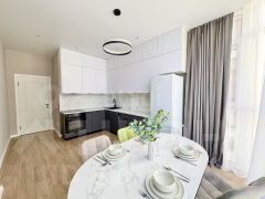 В продаже 1-комнатная квартира в 5-ти минутах ходьбы от моря в ЖК ''Бельведер''. Квартира с ремонтом, мебелью и техникой - заезжай и живи! О квартире:-общая площадь 42,6 кв.м-2-ой невысокий этаж-гардеробная в прихожей-лоджия с выходом из кухни (есть встроенный шкаф для хранения)-вся мебель и техника остаются в квартир-санузел совмещенный-кондиционер, водонагреватель (на период отключения горячей воды)О доме:-монолит-кирпич 2018 года постройки-лифт-парковка на всей территории комплекса-детские и спортивные площадки-на территории ЖК есть сетевые продуктовые магазины (''Перекрёсток'', ''КрасноеБелое''), пункты выдачи популярных маркетплейсов, салоны красоты, аптека и много другоеЖилой комплекс Бельведер расположен на Высоком берегу возле парка Ореховая роща. Придомовая территория включает в себя обустроенные детские, спортивные площадки, гостевые парковочные места, зоны отдыха. В непосредственной близости находится Белая Набережная, кафе и рестораны, Крещенский парк, спуск к морю на галечный пляж.