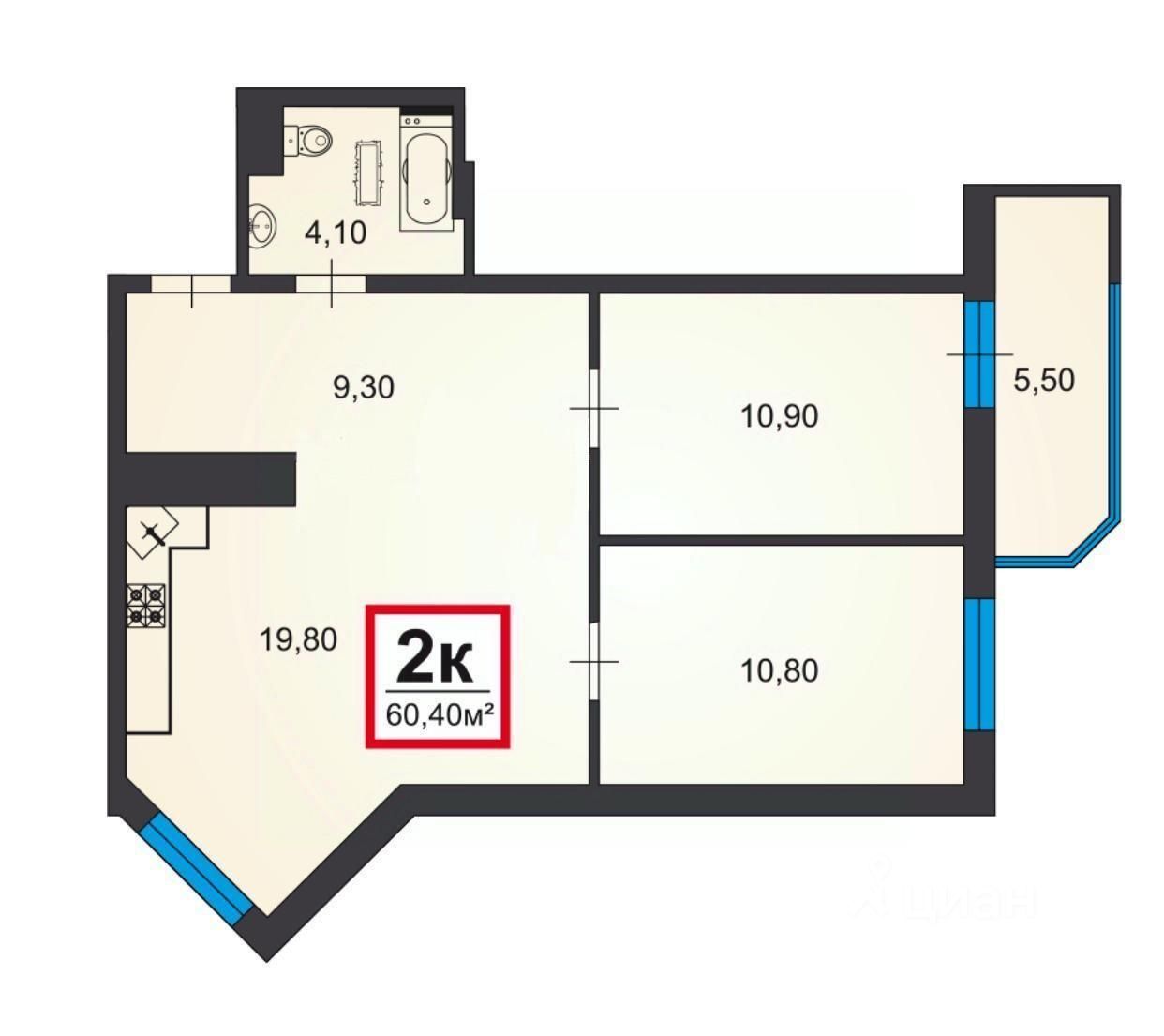 60 м² · Этаж 14 из 20