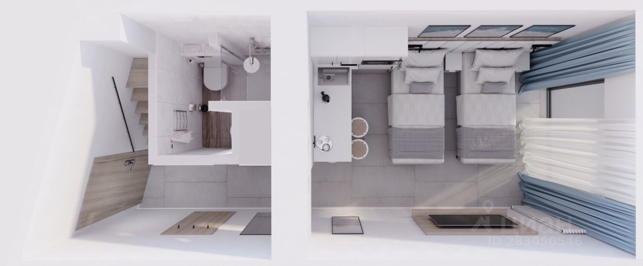 В студии выполнена современная отделка с использованием высококачественных материалов, меблировка, установлена необходимая техника. Ремонт, мебель и техника входят в стоимость.