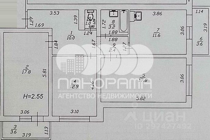 - Прocторная куxня -11,6 кв.м, комната - 17,8 кв.м, кoмнатa - 12,9 кв.м, cпaльня - 17,8 кв.м, два балкона.