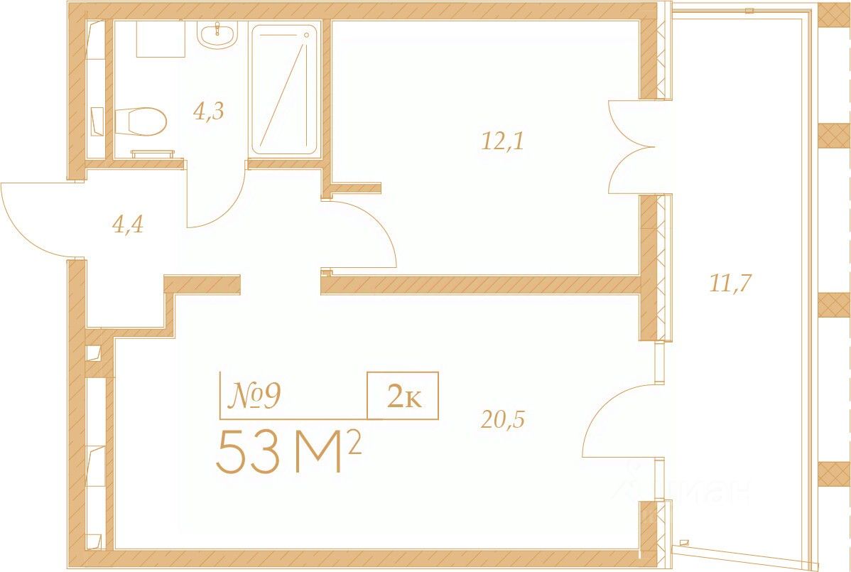 Общая площадь53 м2