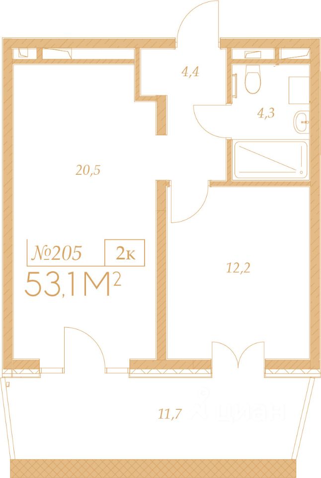 Общая площадь53,1 м2