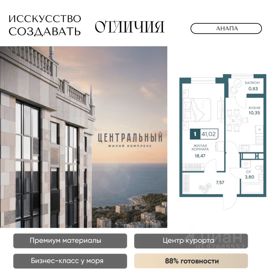 Жилой комплекс бизнес-класса ''Центральный'' в Анапе. Образец архитектурного искусства в центре курорта, для вашей респектабельной жизни у моря. Готов на 85%, сдаем уже в 2026 году! Для тех, кто ценит долговечность материалов, море в 10 минутах и шикарные виды без туристической суеты, кто привык к современному комфорту, и ценит время. Жить в комфорте, а не в пробках просто. Магазины сильных брендов, эстетика натурального камня в торговой галерее прямо в доме. Красивый шоппинг и новая точка притяжения в городе ЖК бизнес-класса ''Центральный''. Кафе, пекарни, а также большой развлекательный центр для детей и своя частная гимназия. Натуральные материалы в отделке фасада и во дворе. Фасад из натурального мрамора выделяет дом на фоне остальных мозаикой из 4 песчаных оттенков. Камень прекрасен сам по себе, что в доказательствах не нуждается, ведь прослужит долгие годы и сохранит дом на целые поколения. Приватный двор с гранитными пешеходными дорожками и озеленением с более чем 50 видами деревьев и растений. Современные детские и спортивные площадки, зона отдыха с фонтаном и ароматным садом пряный трав. Релакс после насыщенного дня дома, в окружении пышной зелени, водным охлаждением в жару и в безопасности: ведь двор закрыт, и как дом, лифты и паркинг под наблюдением видеокамер 24/7. Лифты скоростные и бесшумные, оснащены оборудованием для стабильного сигнала мобильной связи, удобно доставят вас от двери квартиры в подземный паркинг. VIP-клиентам премиум квартиры в панорамной башне (квартиры закрыты к продаже, по согласованию с менеджером обсуждается персональная стоимость) Премиум предложения всего две квартиры на этаже общей площадью 130 м2. Индивидуальные лифты с доступном в паркинг, панорамное остекление с защитой от ультрафиолета, потрясающие виды на город и горы, в перспективе на Храм. Красивая жизнь в центре курорта в достойном окружении уже ждет! До новой квартиры у моря один звонок. Застройщик ''Гамма'': 8 ЖК в Анапе сдано точно в срок, славимся постоянными покупателями. Предоставим условия покупки, выгодные именно вам: рассрочка, ипотечные программы по сниженным ставкам и увеличенной суммой ипотеки.