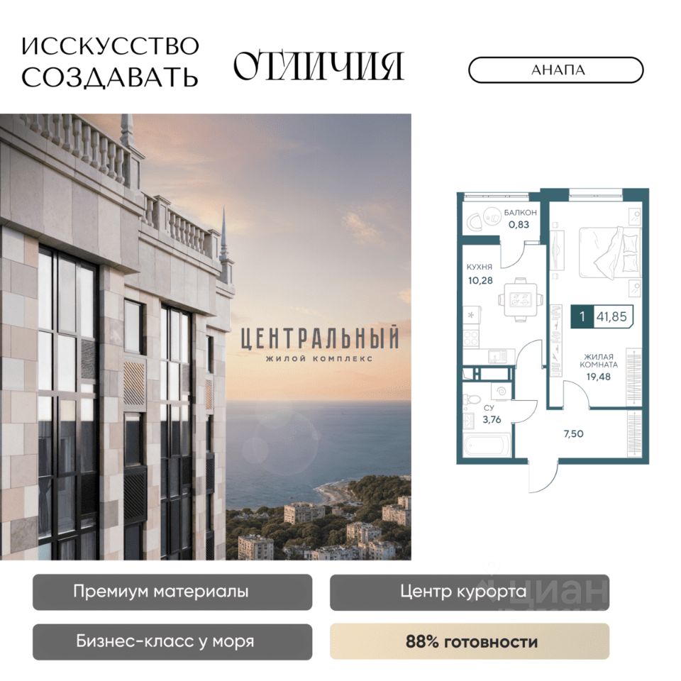 Жилой комплекс бизнес-класса ''Центральный'' в Анапе. Образец архитектурного искусства в центре курорта, для вашей респектабельной жизни у моря. Готов на 85%, сдаем уже в 2026 году! Для тех, кто ценит долговечность материалов, море в 10 минутах и шикарные виды без туристической суеты, кто привык к современному комфорту, и ценит время. Жить в комфорте, а не в пробках просто. Магазины сильных брендов, эстетика натурального камня в торговой галерее прямо в доме. Красивый шоппинг и новая точка притяжения в городе ЖК бизнес-класса ''Центральный''. Кафе, пекарни, а также большой развлекательный центр для детей и своя частная гимназия. Натуральные материалы в отделке фасада и во дворе. Фасад из натурального мрамора выделяет дом на фоне остальных мозаикой из 4 песчаных оттенков. Камень прекрасен сам по себе, что в доказательствах не нуждается, ведь прослужит долгие годы и сохранит дом на целые поколения. Приватный двор с гранитными пешеходными дорожками и озеленением с более чем 50 видами деревьев и растений. Современные детские и спортивные площадки, зона отдыха с фонтаном и ароматным садом пряный трав. Релакс после насыщенного дня дома, в окружении пышной зелени, водным охлаждением в жару и в безопасности: ведь двор закрыт, и как дом, лифты и паркинг под наблюдением видеокамер 24/7. Лифты скоростные и бесшумные, оснащены оборудованием для стабильного сигнала мобильной связи, удобно доставят вас от двери квартиры в подземный паркинг. VIP-клиентам премиум квартиры в панорамной башне (квартиры закрыты к продаже, по согласованию с менеджером обсуждается персональная стоимость) Премиум предложения всего две квартиры на этаже общей площадью 130 м2. Индивидуальные лифты с доступном в паркинг, панорамное остекление с защитой от ультрафиолета, потрясающие виды на город и горы, в перспективе на Храм. Красивая жизнь в центре курорта в достойном окружении уже ждет! До новой квартиры у моря один звонок. Застройщик ''Гамма'': 8 ЖК в Анапе сдано точно в срок, славимся постоянными покупателями. Предоставим условия покупки, выгодные именно вам: рассрочка, ипотечные программы по сниженным ставкам и увеличенной суммой ипотеки.