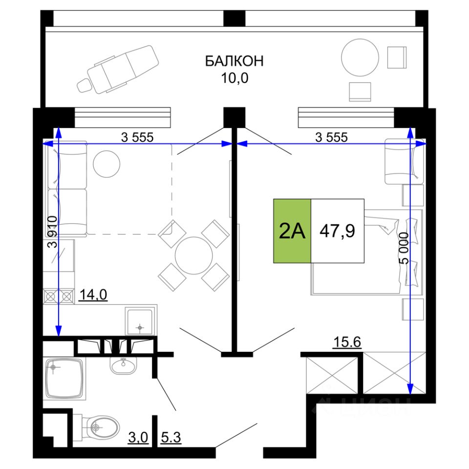 Общая площадь47,9 м2