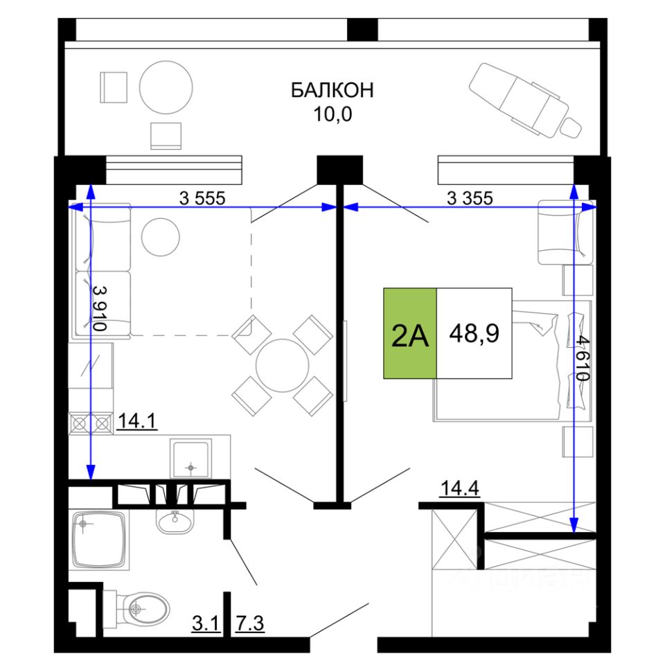 Общая площадь48,9 м2