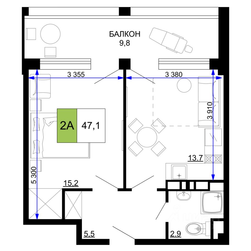 Общая площадь47,1 м2