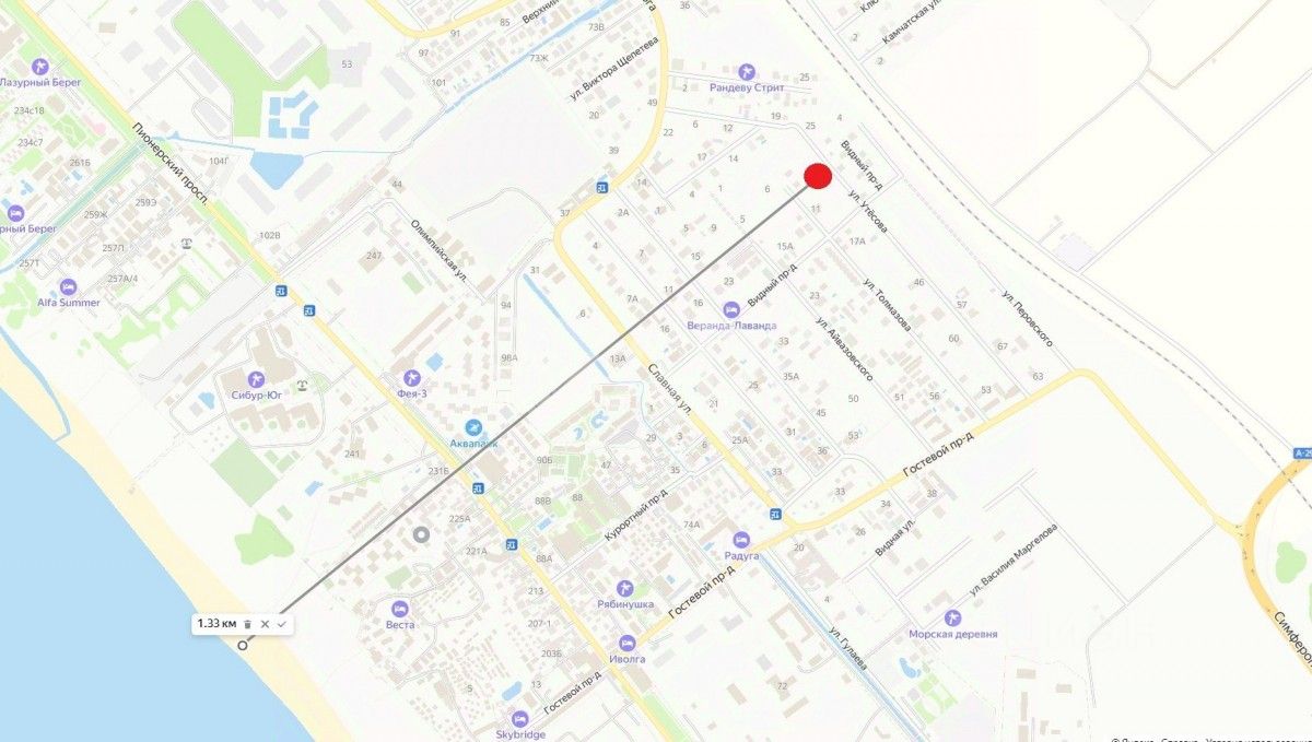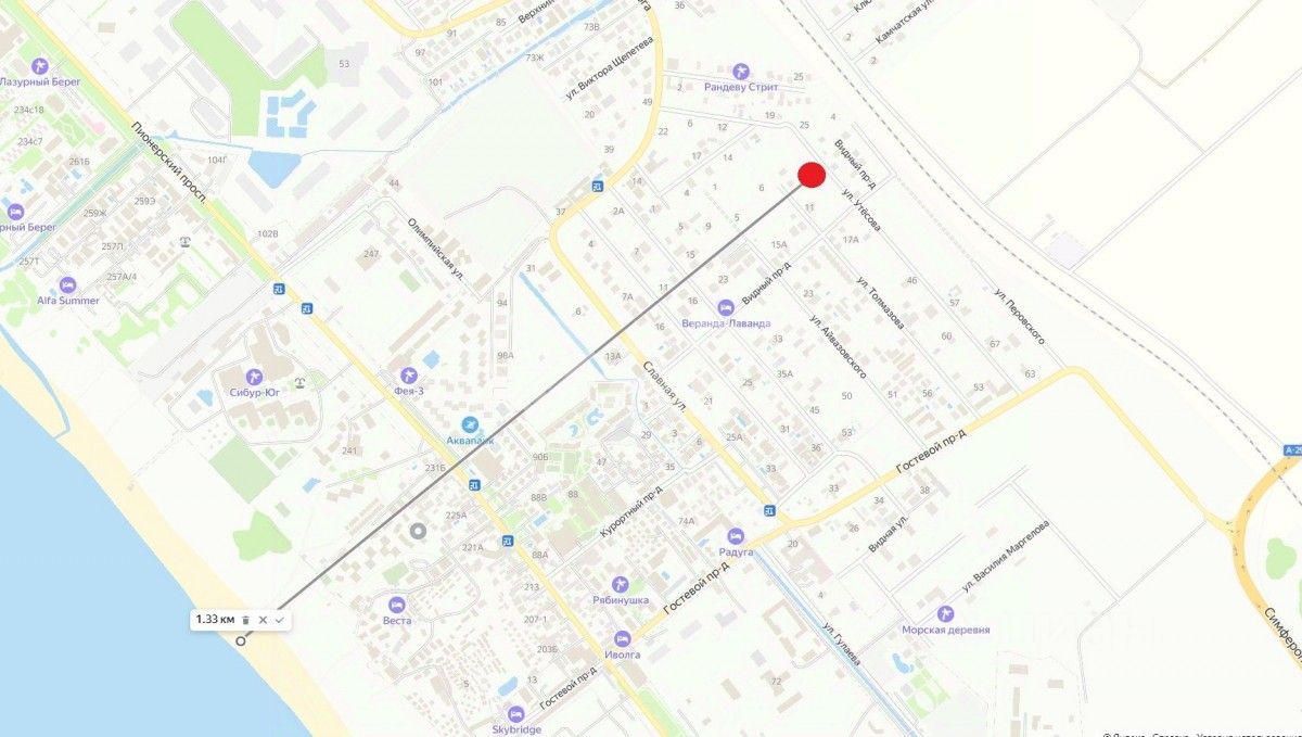 - Расстояние до моря 1,33 км. по прямой