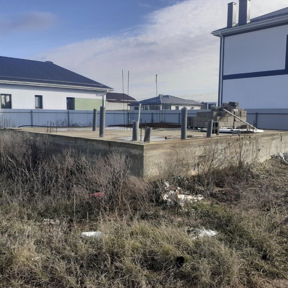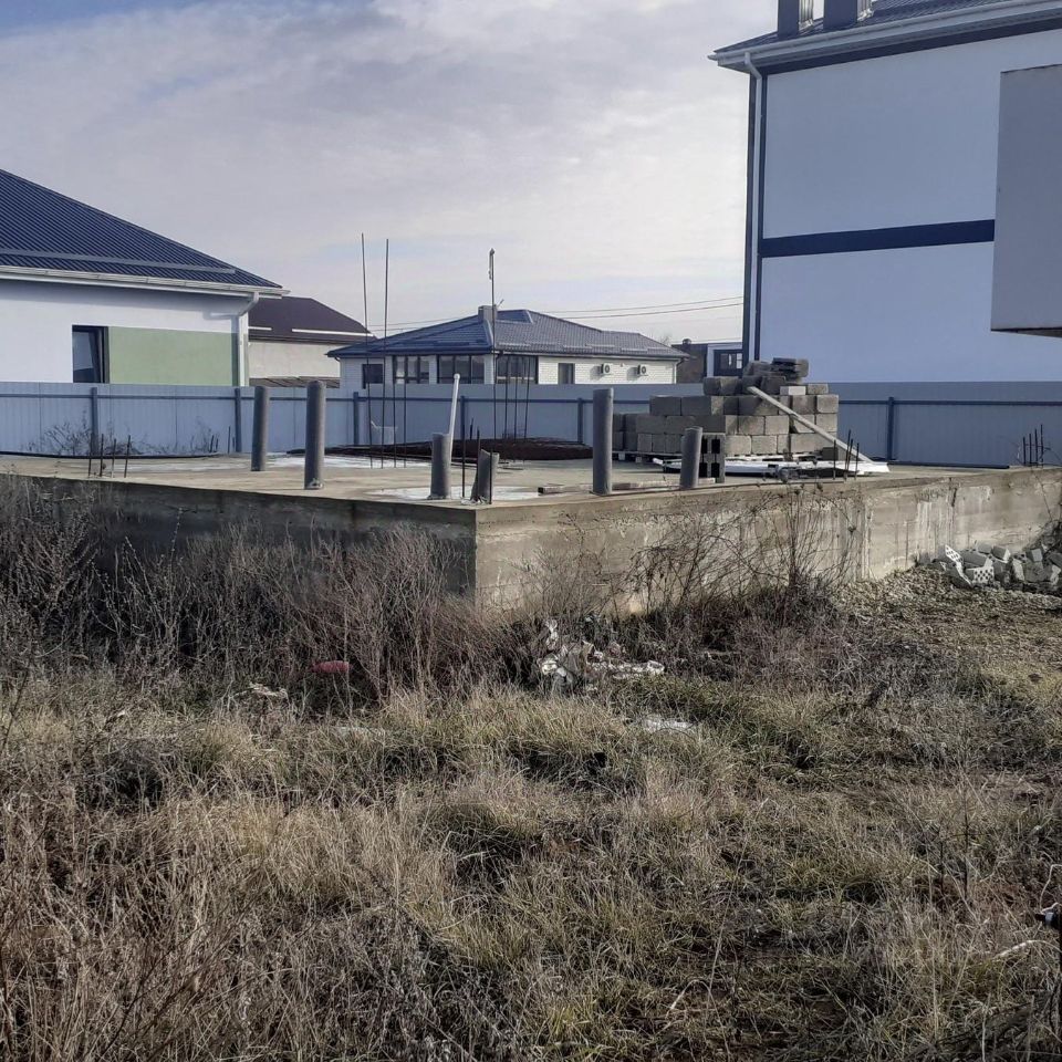 Продам ровный перспективный участок с начатым строительством (фундамент 7 на 9 ) с выводами под воду и канализацию.