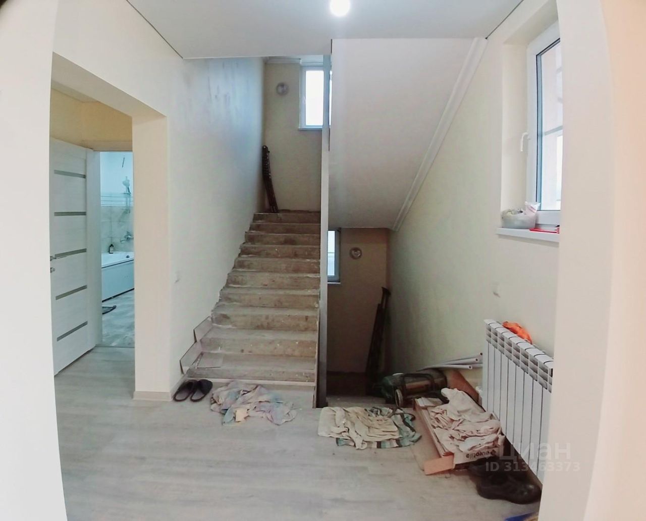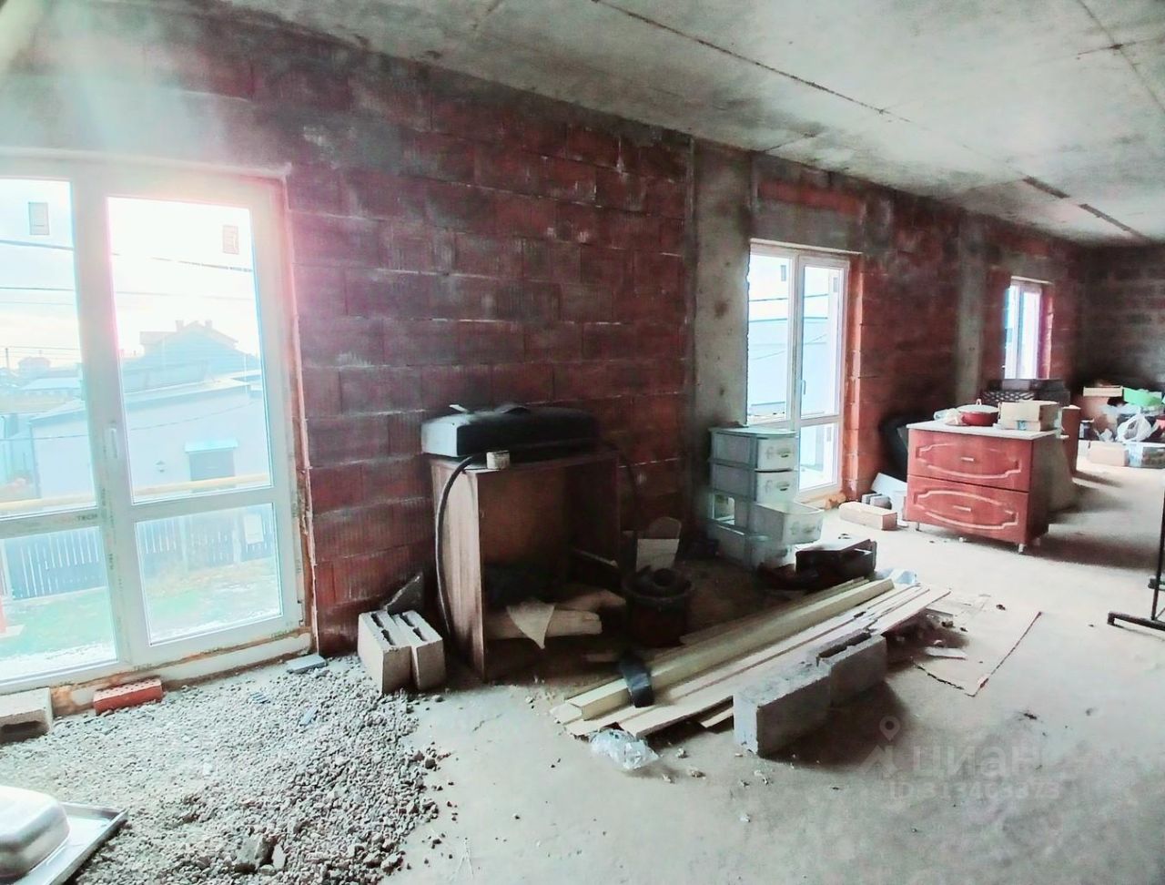 На 1-ом этаже (133 кв.м) сделан ремонт, проведено отопление и теплый пол. На 1-ом этаже располагаются три спальные комнаты, большая кухня-гостиная, гардеробная (кладовая) комната, три санузла (один совмещённый с ванной расположен отдельно, два других примыкают к спальням). Просторный коридор может вместить большую гардеробную. 2-ой этаж (154 кв.м) без отделки представляет собой большой холл с колоннами и две спальные комнаты, каждая из которых со своим санузлом. Одна из комнат имеет выход на просторный балкон 14 кв.м, а вторая - на балкон 7 кв.м. Есть цокольный этаж площадью 145,5 кв.