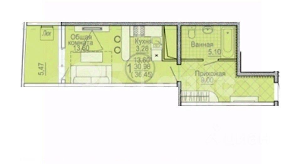 Студия 38,8 кв. м. (7 кв.м. теплая лоджия). Ремонт, мебель по договоренности. Квартира с хорошим ремонтом, очень большая и просторная студия.