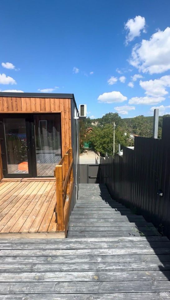 ХАРАКТЕРИСТИКИ ЗДАНИЯ: Размер 8х4,8х3, площадь 38 кв.м. Каркас выполнен из профильной трубы 80х80 толщина металла 3 мм, металл покрыт антикоррозийным грунтом. Двери: Метало пластиковые Окна: Метало пластиковые Стены, пол и потолок утеплены минеральной ватой 100 мм Варианты внутренней отделки стен: вагонка штиль. Варианты отделки потолка: вагонка штиль. Пол: метало каркас 50х50 мм, лаги 100х40, утеплитель, ОSВ-15мм, ламинат 33 класс, сетка от грызунов. Наружная отделка: цветной проф лист/имитация бруса. Сан.узлел стены, пол выложен кафель, установлен фаянс и все что нужно для эксплуатации. Установлена мебель, бытовая техника, система кондиционирования. Электрика и инженерная разводка выполнена, установлены электро точки!