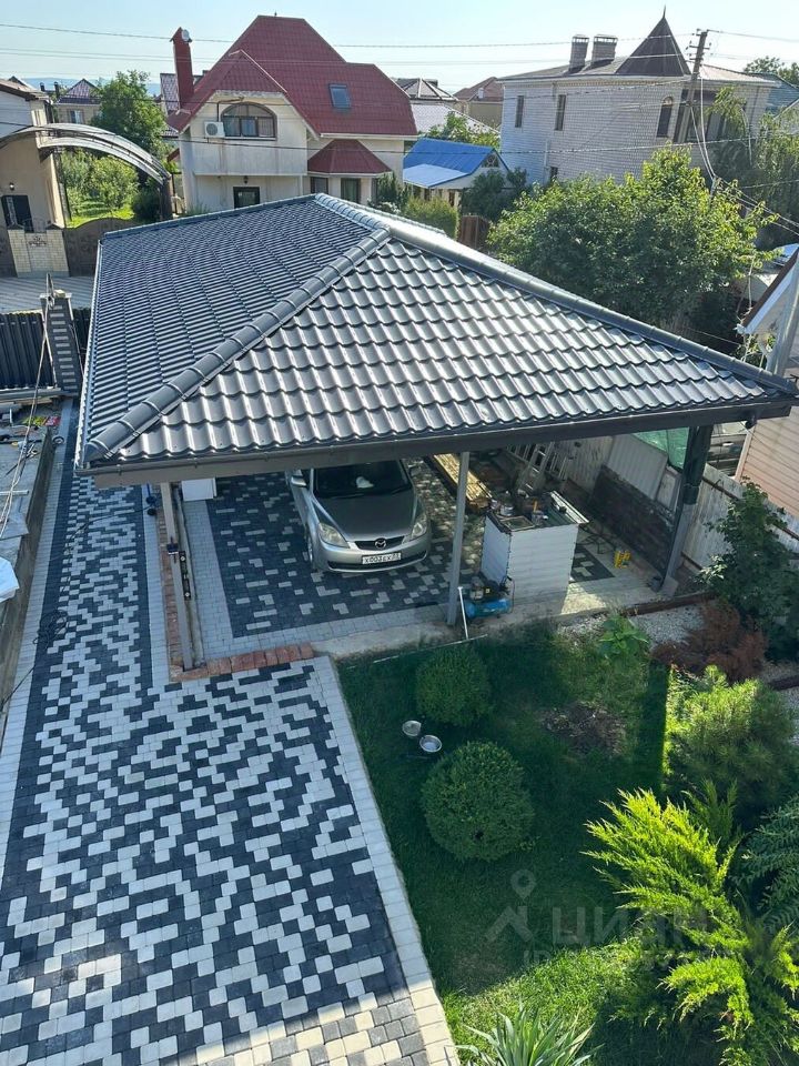 Прекрасный сад, персики, яблоки, груши, черешня, виноград, киви , хурма, банан, инжир, т.п Навес/ гараж, где можно поставить автомобиль, лодку, еще один автомобиль и останется много места! (Размер 6,5*9,5).