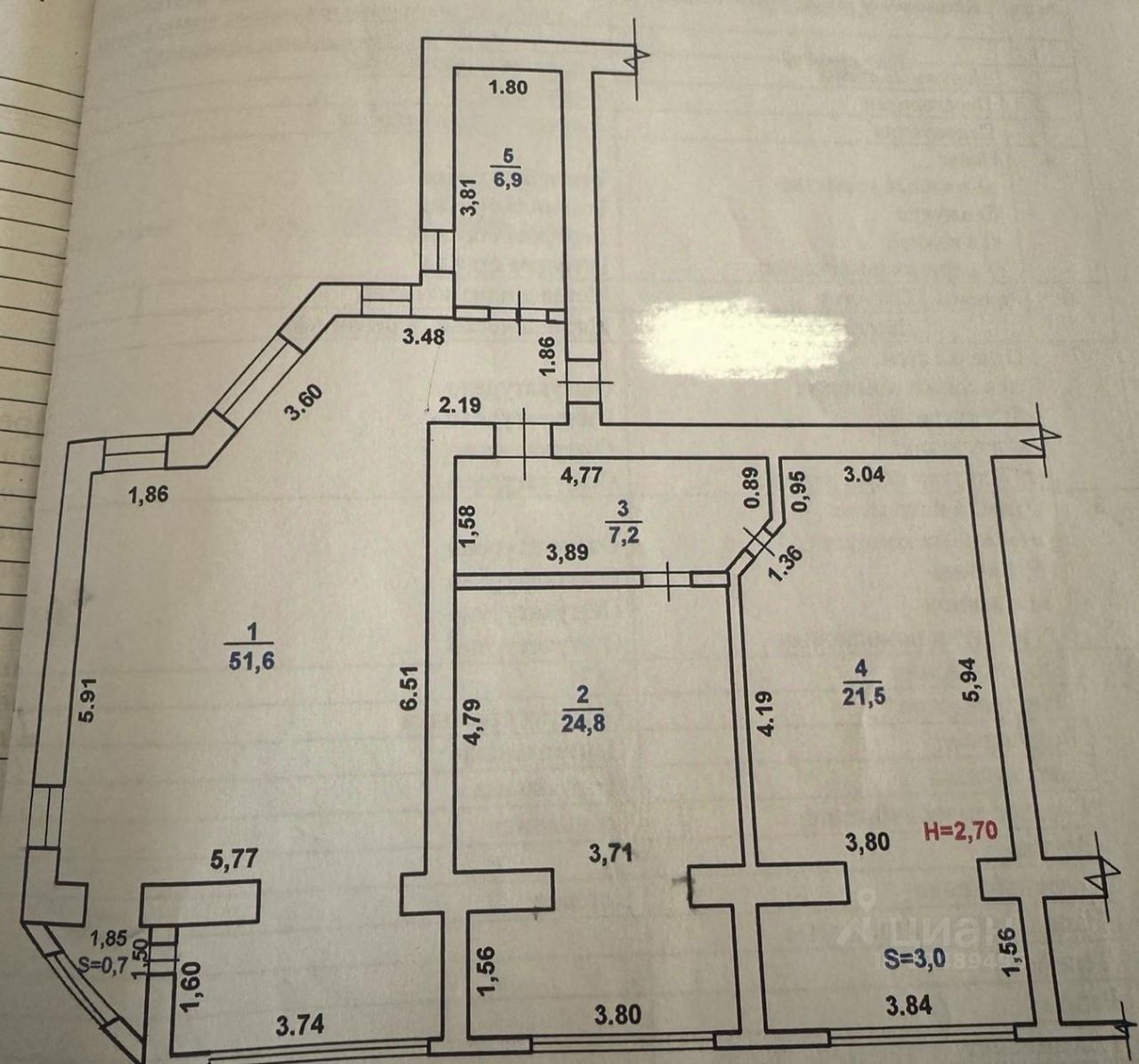 Высота потолков — 2,8 м.