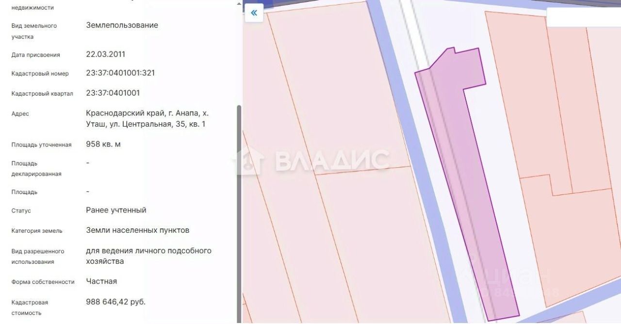 Код объекта: 1546752. Продается участок с очень широким фасадом! Площадь участка - 9.58 сот. Фасад участка - 73 м Категория земли - Земли поселений (земли населенных пунктов) Кадастровый номер - 23:37:0401001:321 Подъезд к участку - асфальт Коммуникации: Электричество - столб стоит Вода - скважина (необходимо делать) Канализация - септик (необходимо делать) Газ - по фасаду Описание: Продаётся земельный участок в Краснодарском крае, в живописном хуторе Уташ под Анапой. Это прекрасное место для спокойной жизни и отдыха! Цена вас порадует, а расположение участка сделает вашу жизнь комфортной и удобной. Участок имеет площадь 9,58 соток, к нему ведёт асфальтированная дорога.