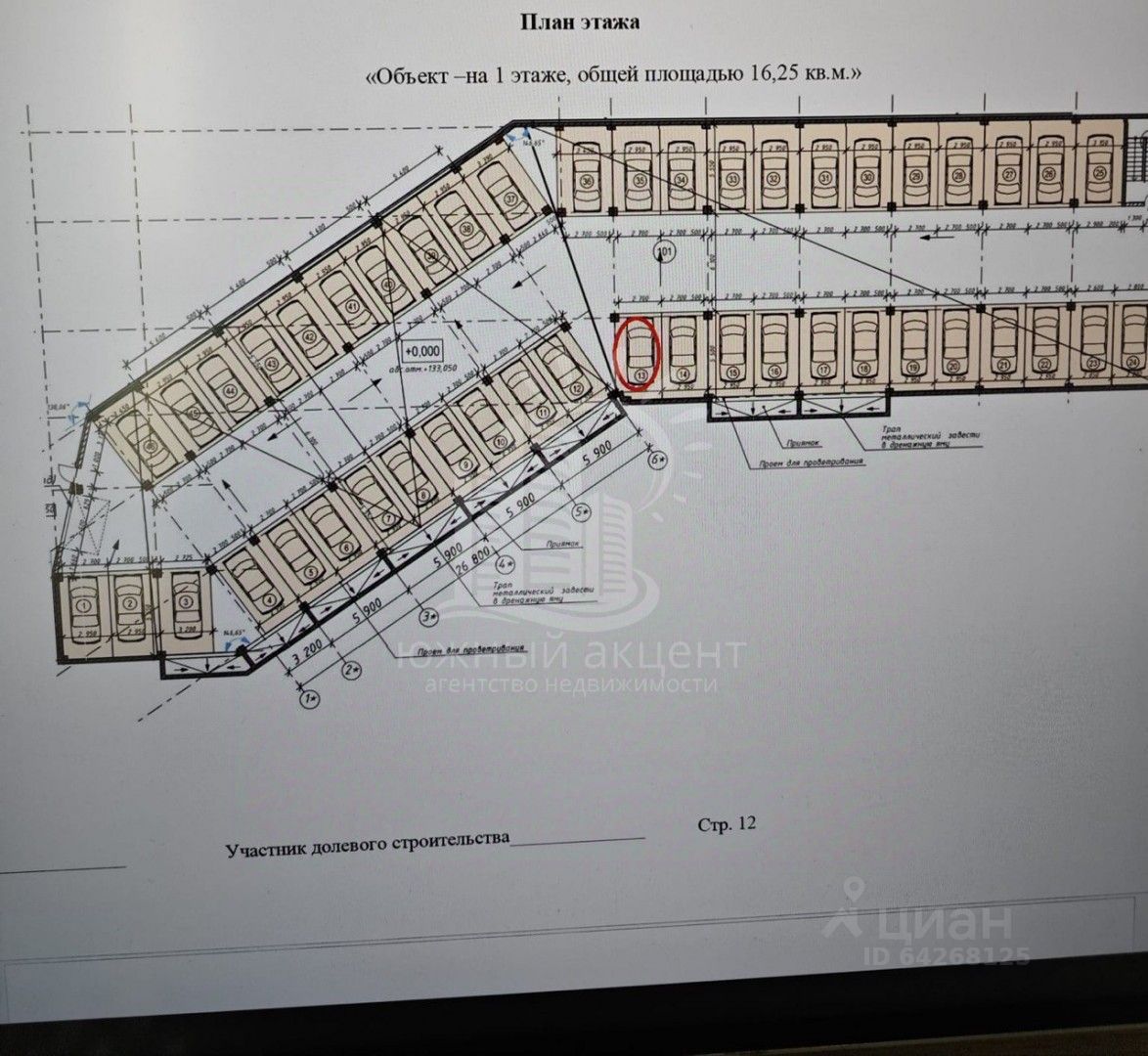 Площадь 16,25 кв.м, расположено на 1-ом этаже закрытое.