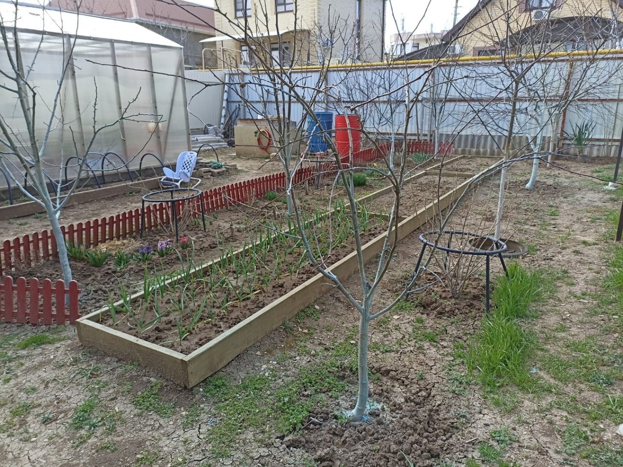Сад на участке с плодоносящими деревьями