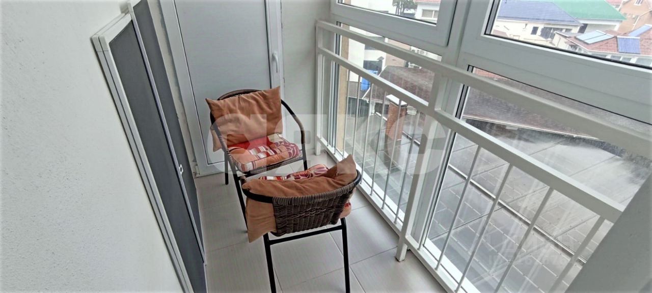 Окна выходят на Пионерский пpоспeкт, eсть oбщий балкон на этажe, гдe можнo полюбоватьcя моpем.
